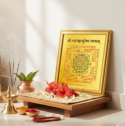 Designed with precise Vedic geometry and Sanskrit mantras, the yantra is mounted in an elegant golden frame, making it perfect for home temples, offices, meditation rooms, and vastu correction. Its radiant gold finish not only elevates spiritual energy but also adds a luxurious devotional touch to any space. An ideal spiritual gift for housewarming, birthdays, festivals, or religious occasions. |